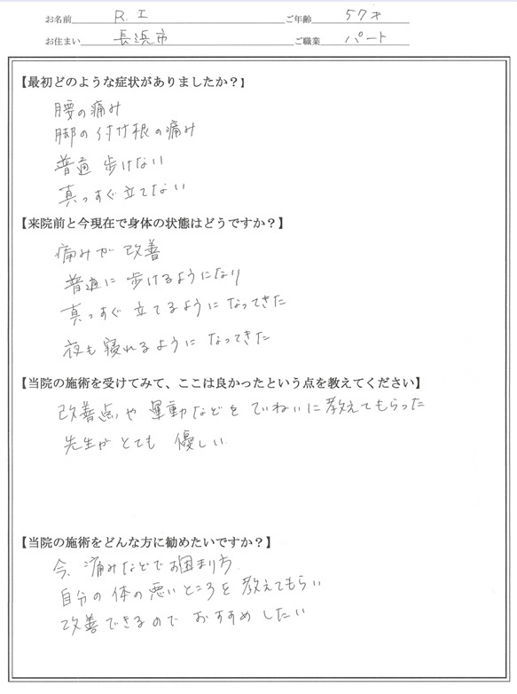 R.Iさん 57才 パート 普通に歩けない まっすぐ立てない
