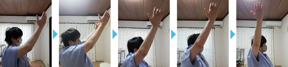 五十肩がひどくなり、両腕があがらなくて、洋服を着るのも脱ぐのも子供らに助けてもらい髪の毛を洗うのも上手く洗えず、仕事場のエプロンの結帯動作も全くできませんでした。